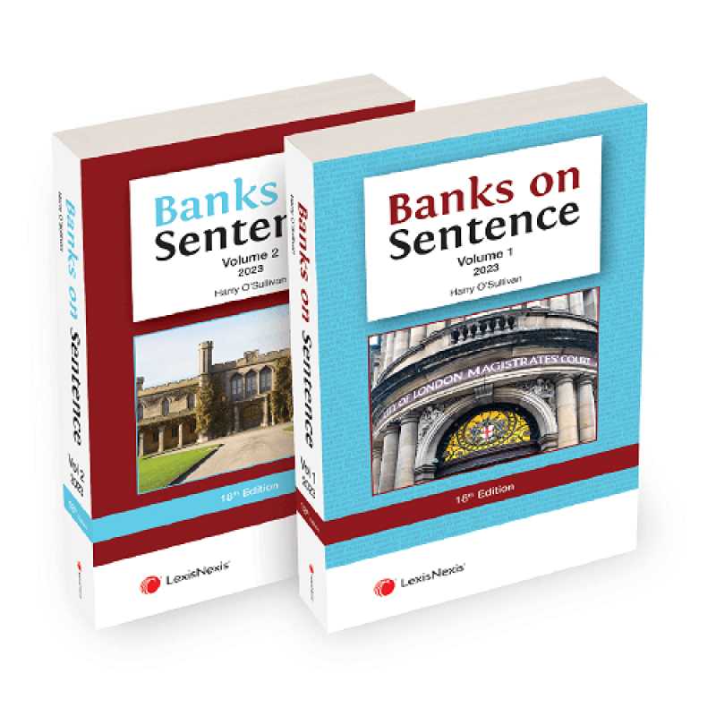 Banks on Sentence Commentary Source Currency: November 2025. Contributors Harry O’Sullivan’ Author View on LexisLibrary Published by: LexisNexis Regions of coverage: United Kingdom Topics covered: Criminal Law Dates covered: Current How often is the source updated? Monthly How quickly is the source updated? Within 2 weeks of publication Available at: LexisNexis Bookstore